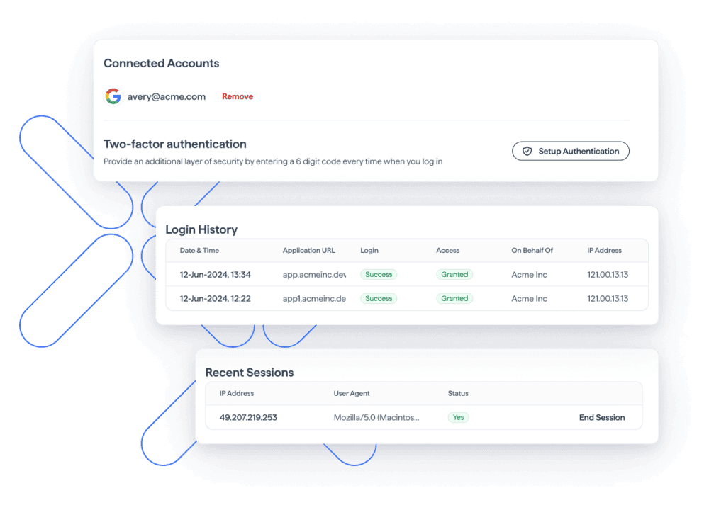 If you have connected accounts (such as Google, Microsoft, or SSO), you can manage them from the **Connected Accounts** section in your profile. To remove a linked account, simply click the **"Remove"** button next to it.